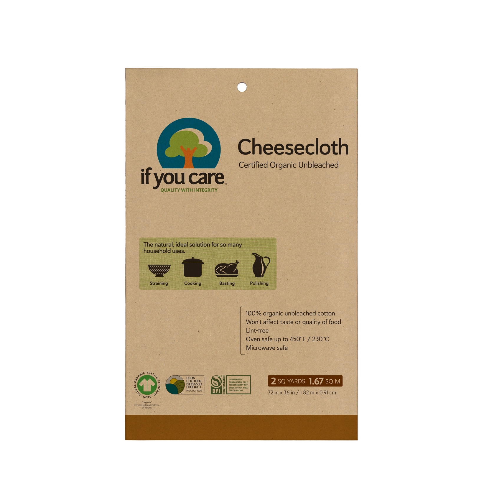 If You Care Cheesecloth is made with GOTS Certified Organic unbleached cotton. It is ideal for cooking, basting, straining and more. It may be boiled and used in microwaves and ovens. It will not affect the taste or safety of your food. It is also good for polishing and other household uses.